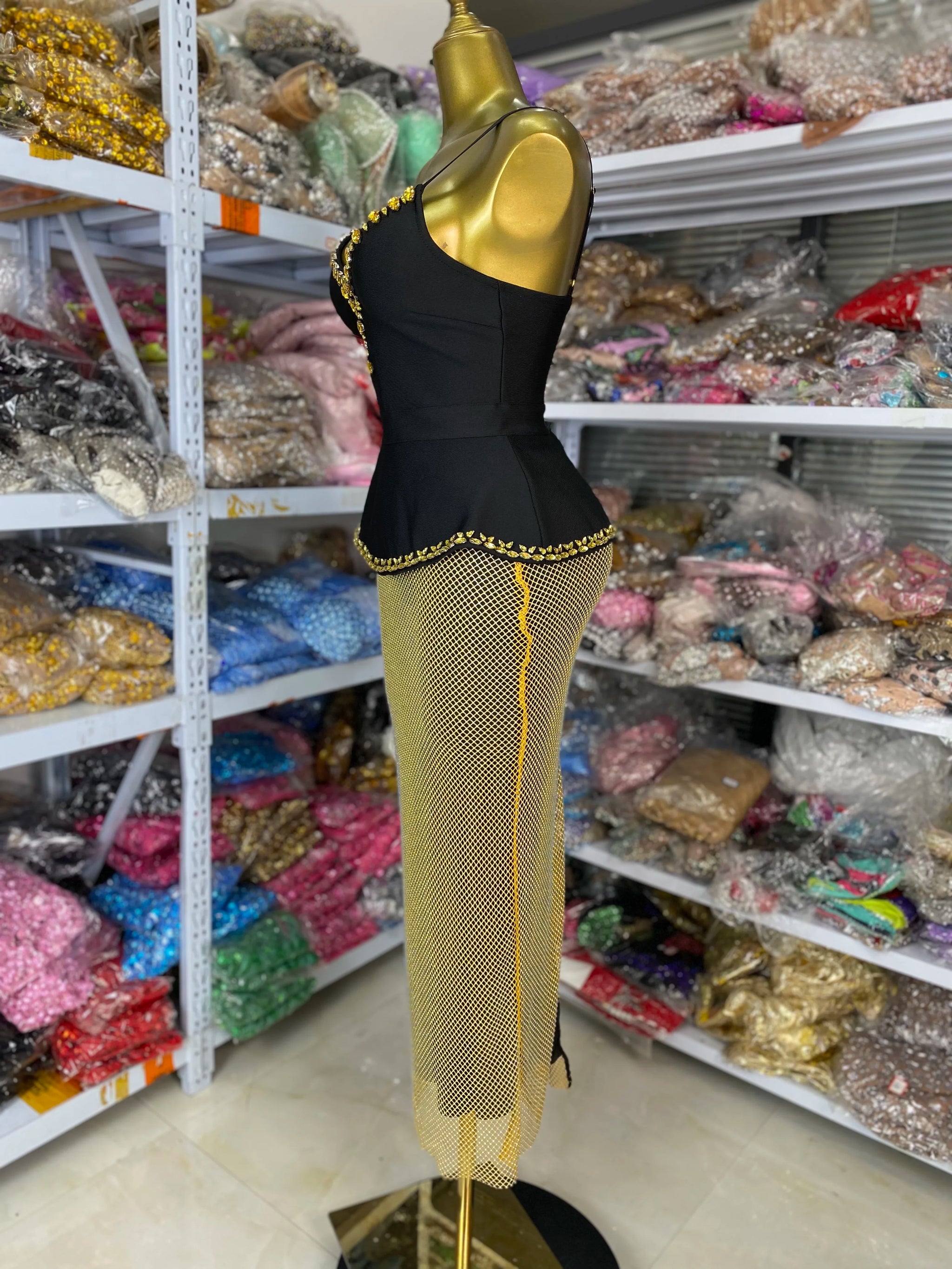 Gold Women New Evening Party Outfits Dress